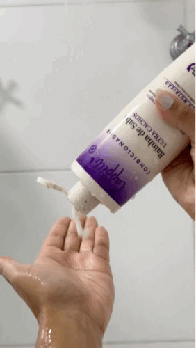 Lave os fios com o Shampoo Ultra Cachos, massageando suavemente o couro cabeludo.