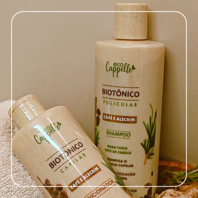 O Kit Biotônico folicular Café & Alecrim é indicado para todos os tipos de cabelo, com queda moderada e/ou intensa e folículos capilares frágeis com fios finos sem força para crescer.